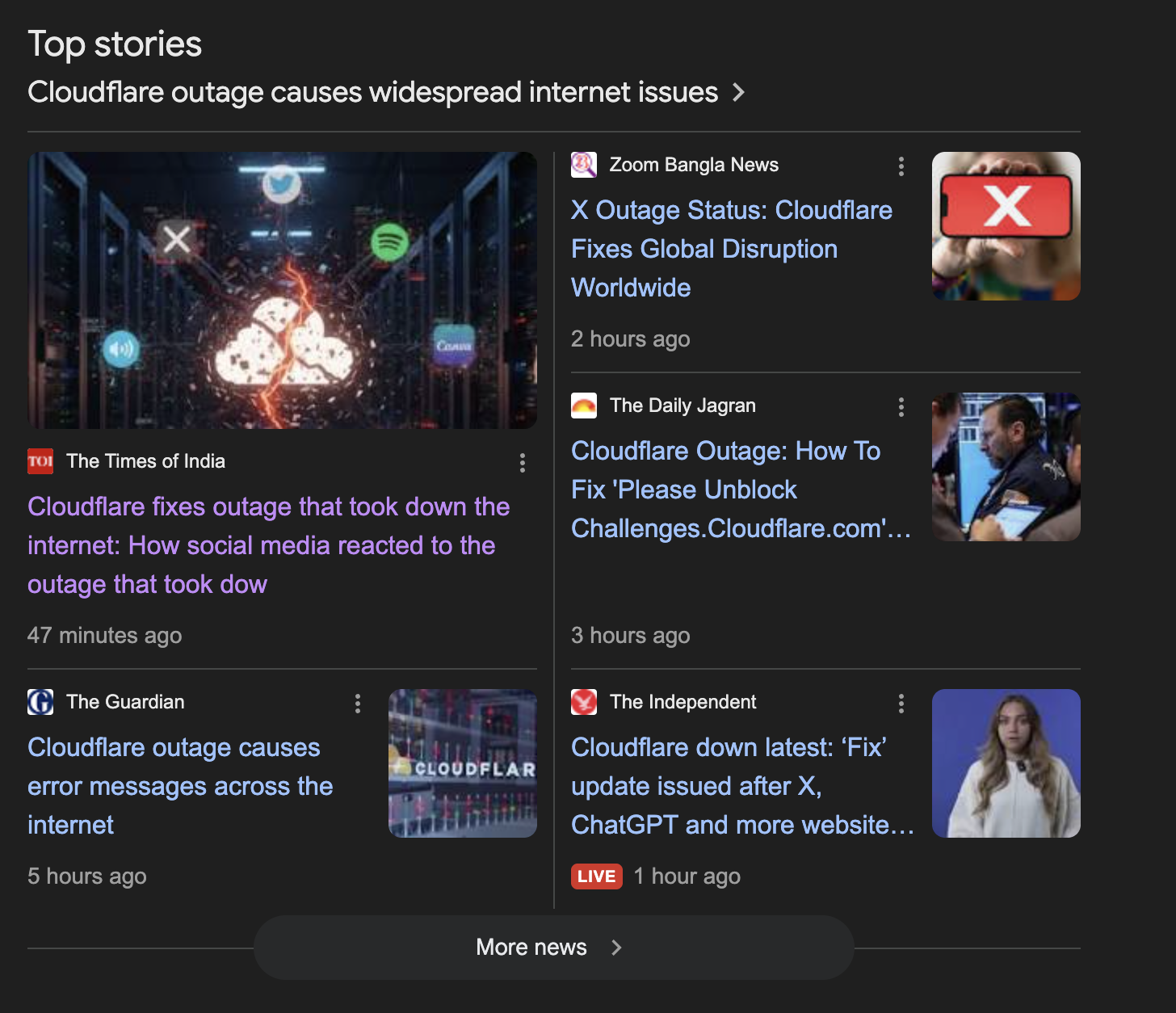 The good news? It wasn't forever. Cloudflare identified the issue and implemented a fix, believing the incident was resolved around 14:42 UTC (9:42 AM ET). So we're talking about roughly 3 hours of chaos. In internet time, that's approximately seventeen eternities.