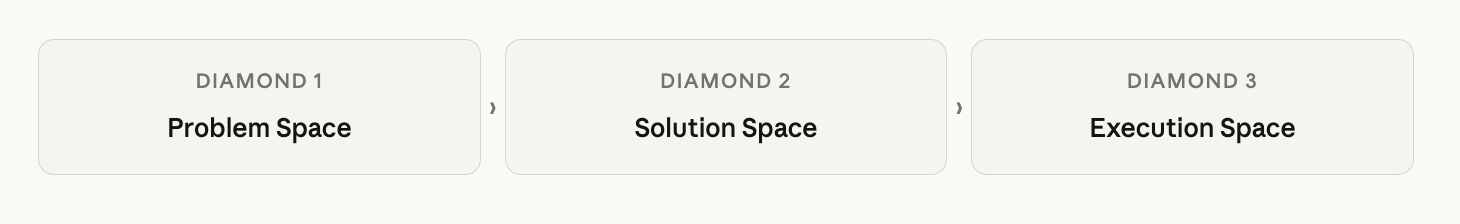 Great product teams use a structured way of thinking called the Triple Diamond process. It combines design thinking with agile delivery and moves through three distinct spaces.